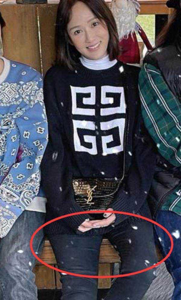 42歲的陳喬恩身材較圓潤,合照的時候雙手垂在身前,刻意用包包遮擋住微胖的小腹,褲子勒痕明顯,之前苗條的大長腿也變粗了不少,網友紛紛猜測她可能有了身孕。